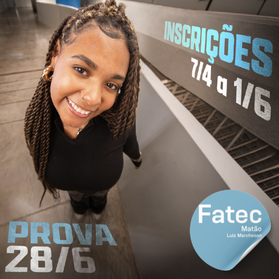 INSCREVA-SE até o dia 01/06, SOMENTE PELO SITE: www.vestibular.fatec.sp.gov.br